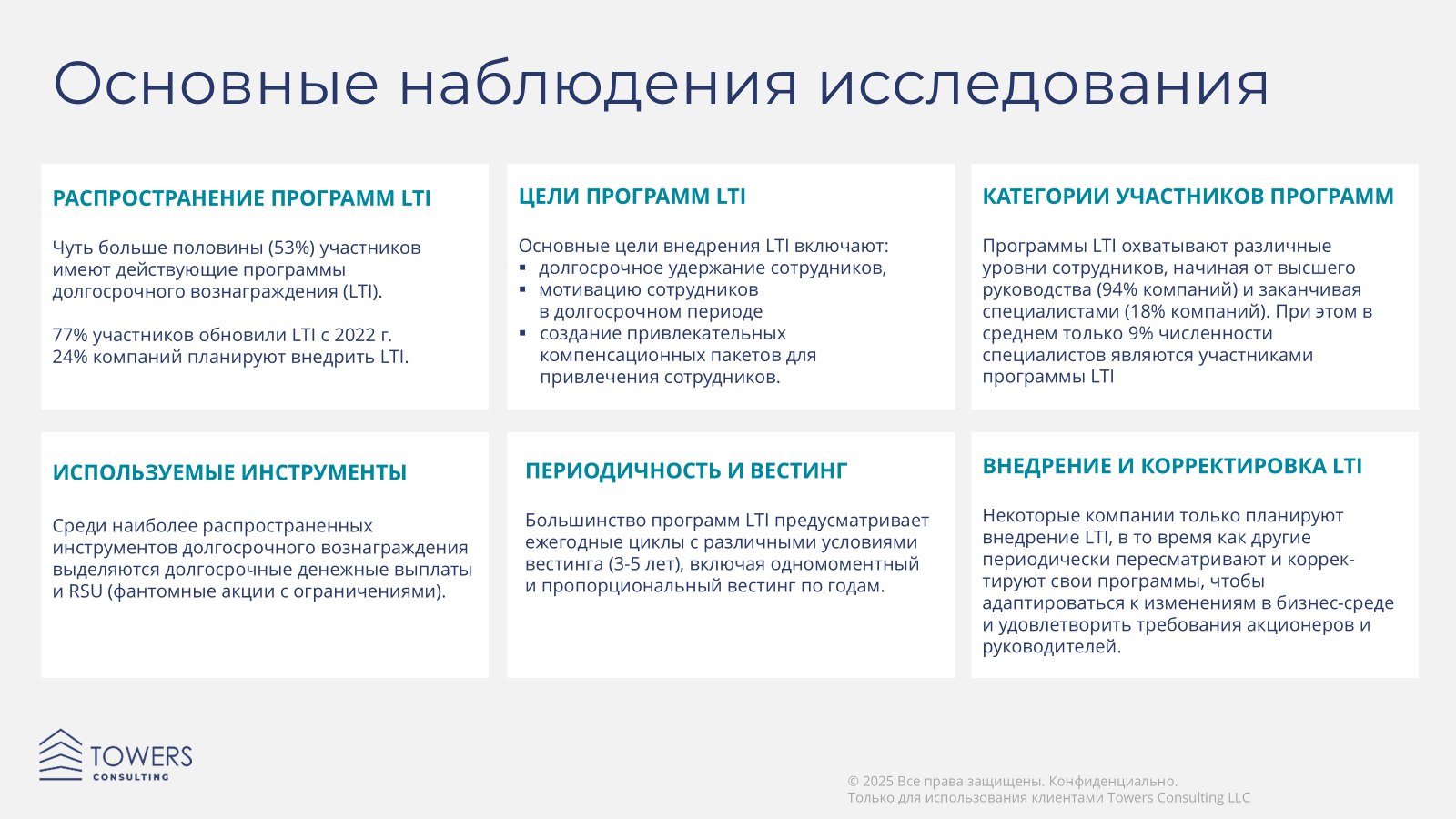 Причем 77% компаний с LTI пересмотрели свои программы с 2022 года, адаптируя их под новые реалии.